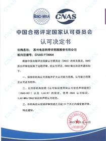 • 中國合格評定國家認可委員會認可決定書(CNAS PT0054)