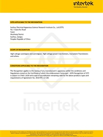 • 中國船級社産品檢測和試驗機構認可證書(電器産品)反面