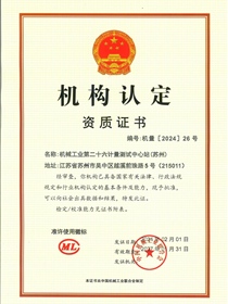 • 機械工業第二十六計量測試中心站(蘇州)機構認定資質證書