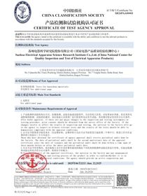 • 中國船級社産品檢測和試驗機構認可證書(電器産品)正面