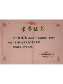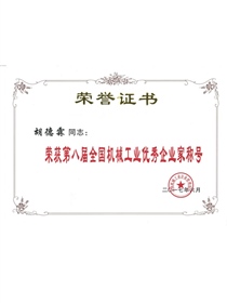 • 榮獲第八屆全國機械工業優秀企業家稱号