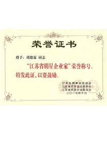 • 江蘇省改革開放40周年十大影響力品牌人物-胡德霖(獎狀)