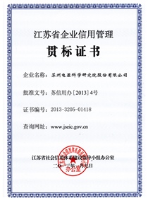 • 江蘇省企業信用管理貫标證書