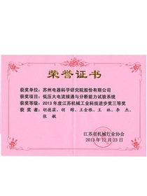 • 江蘇機械工業科技進步一等獎