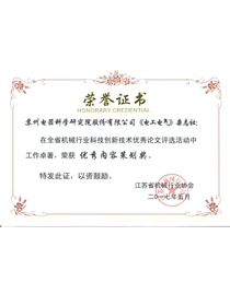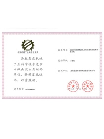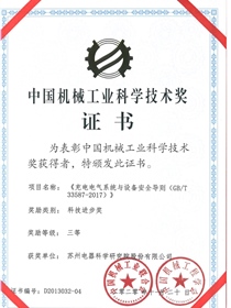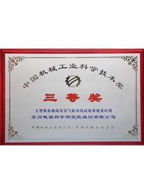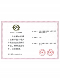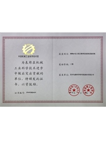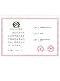 • 中國機械工業科學技術獎證書-科技進步獎三等獎