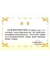 • “認證認可關鍵技術研究及示範-消費類産品中有毒有害物質的認證評價技術研究及示範”課題研究突出貢獻獎