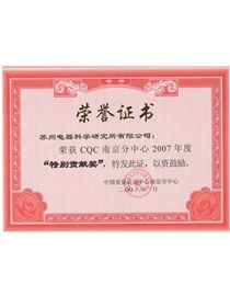 • CQC南京分中心2007年度特别貢獻獎