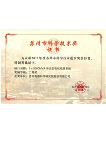 • 2011年度蘇州市科學技術進步獎二等獎