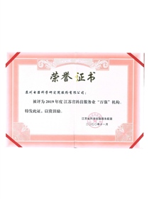 • 2019年度江蘇省科技服務業百強機構(證書)
